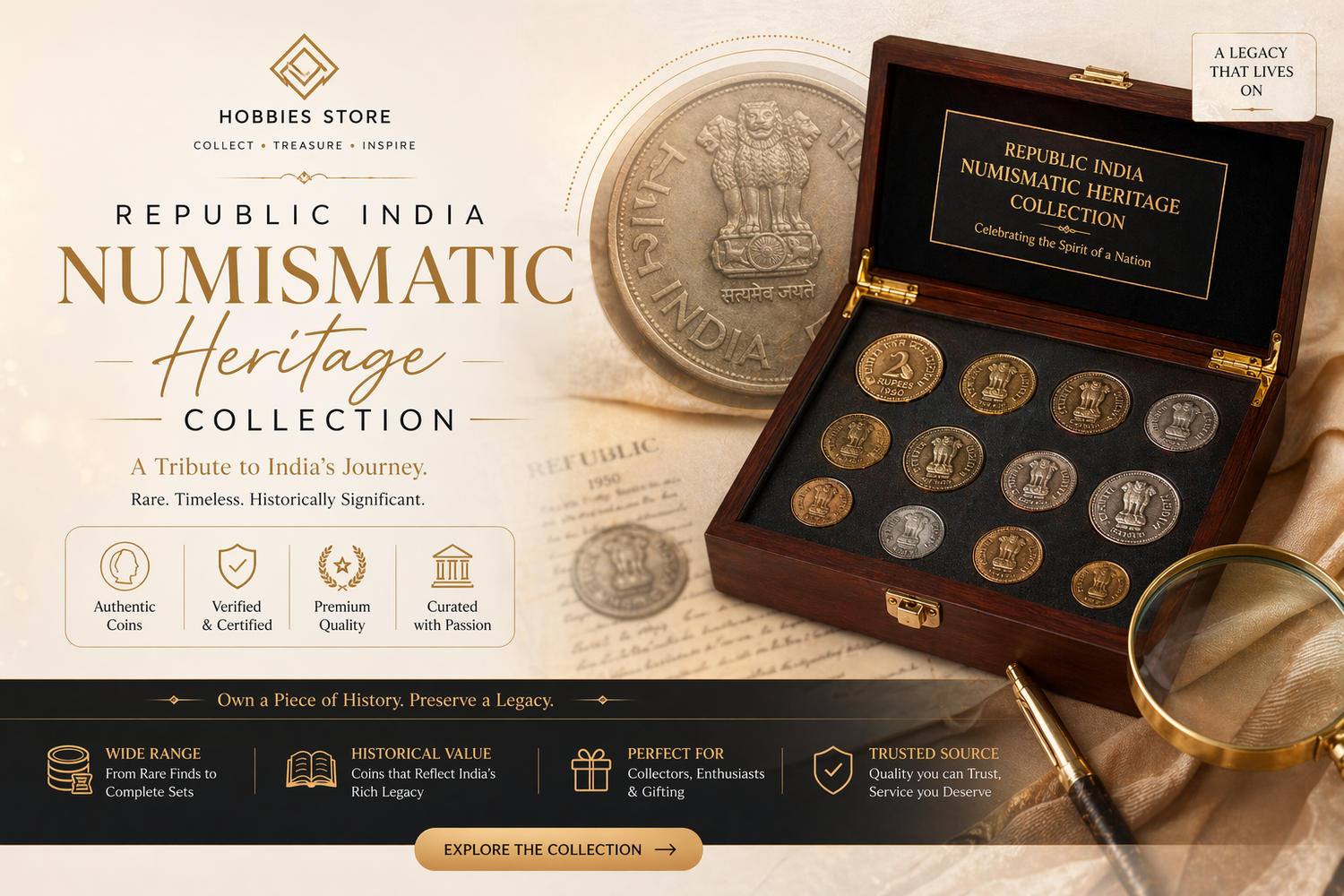 A carefully curated collection of Republic India coins that reflects the nation’s milestones, history, and evolving identity. Ideal for collectors, gifting, and heritage lovers.